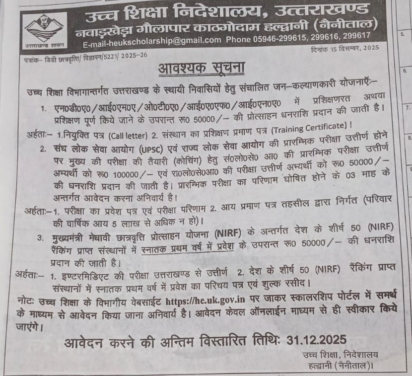 Read More- Advertisement for the post of Assistant Professor in Harsh Vidya Mandir PG College Raisi, Haridwar 🔔
